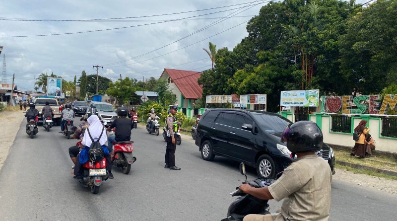 Personil Polsek Manggeng Polres Aceh Barat Daya Laksanakan Strongpoint Pagi Dan Gatur Lalu Lintas Di Depan Sekolah Guna Terciptanya Kamseltibcar Lantas