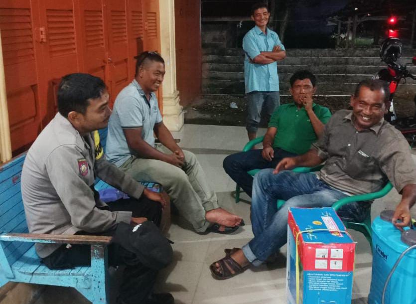 BHABINKAMTIBMAS POLSEK KUALA BATEE POLRES ABDYA GELAR PATROLI DAN SAMBANG WARGA PADA MALAM HARI SERTA MEMBERI PESAN-PESAN KAMTIBMAS KEPADA MASYARAKAT GUNA CIPTAKAN RASA AMAN DAN NYAMAN