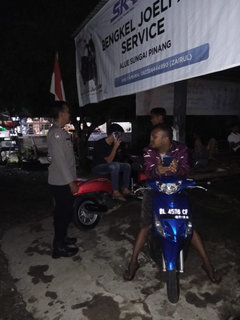 BHABINKAMTIBMAS POLSUBSEKTOR JEUMPA POLRES ABDYA GELAR PATROLI MALAM DAN SAMBANG WARGA PADA MALAM HARI SERTA MEMBERI PESAN-PESAN KAMTIBMAS