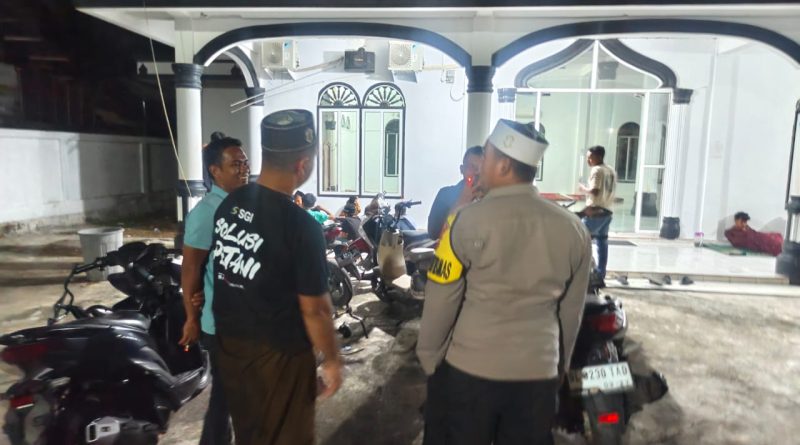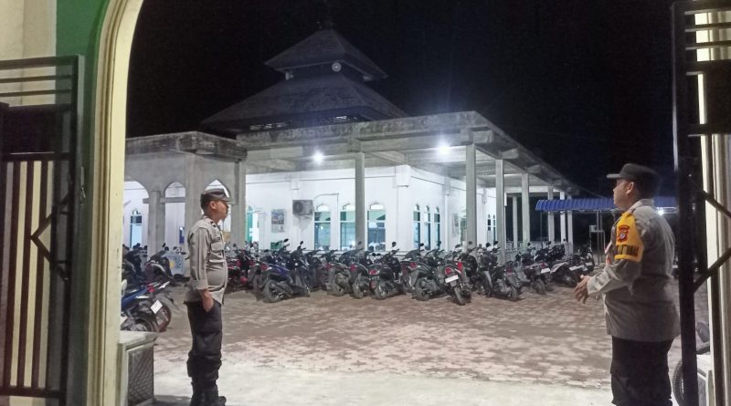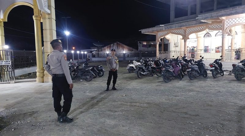 Aceh Barat Daya (Abdya) – Bhabinkamtibmas Polsek Manggeng melaksanakan kegiatan Pengamanan Shalat Tarawih di Mesjid Al Ihksan Desa Lhung Baroe,