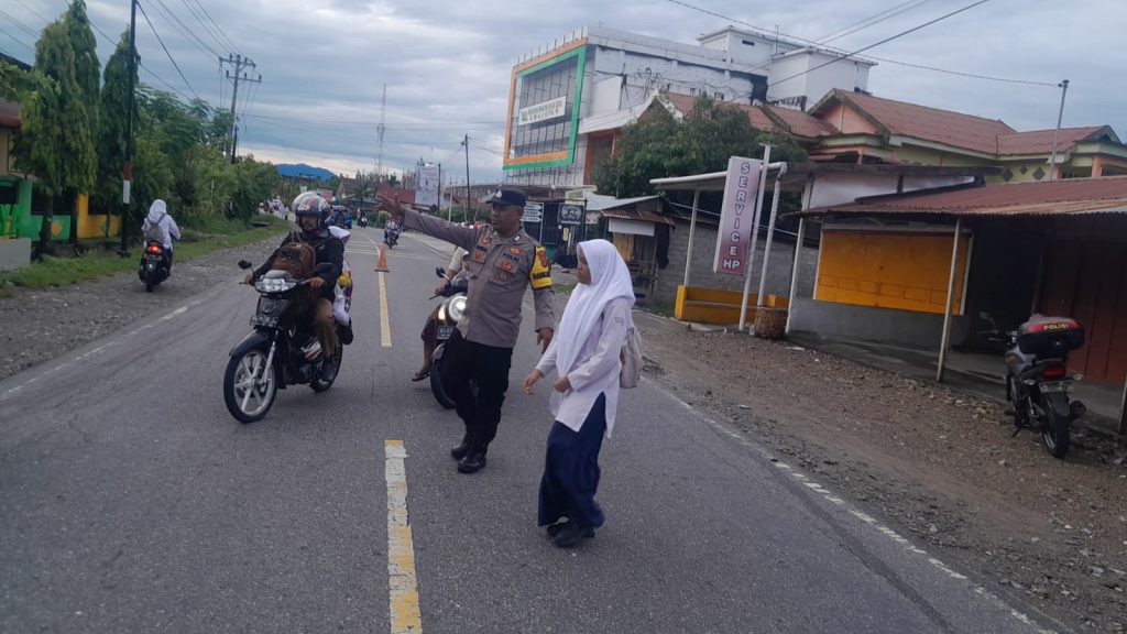 Aceh Barat Daya (Abdya) – Personel Polsek Manggeng, Polres Aceh Barat Daya (Abdya), melaksanakan strongpoint dan pengaturan lalu lintas (gaturlalin) di depan sekolah-sekolah yang ada di wilayah Manggeng, Abdya. Kegiatan ini bertujuan untuk terciptanya Keamanan, Keselamatan, Ketertiban, dan Kelancaran (Kamseltibcar) Lalu lintas di sekitar sekolah. Senin (20/04/2026)
