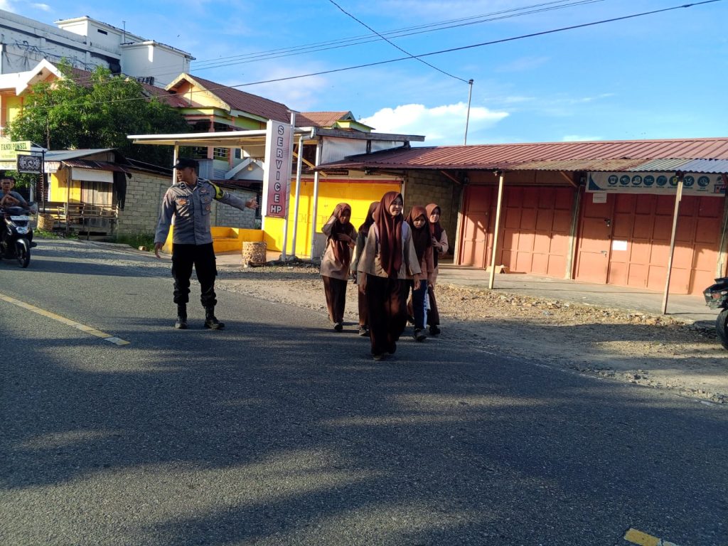 Aceh Barat Daya (Abdya) – Personel Polsek Manggeng, Polres Aceh Barat Daya (Abdya), melaksanakan strongpoint dan pengaturan lalu lintas (gaturlalin) di depan sekolah-sekolah yang ada di wilayah Manggeng, Abdya. Kegiatan ini bertujuan untuk terciptanya Keamanan, Keselamatan, Ketertiban, dan Kelancaran (Kamseltibcar) Lalu lintas di sekitar sekolah. Jumat (10/04/2026)
