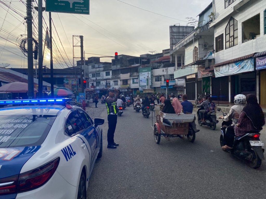 Cegah Kemacetan di Pusat Kota Blangpidie, Personel Sat Lantas Polres Abdya Gelar Pengaturan Lalu Lintas di Sore Hari Menjelang Berbuka Puasa