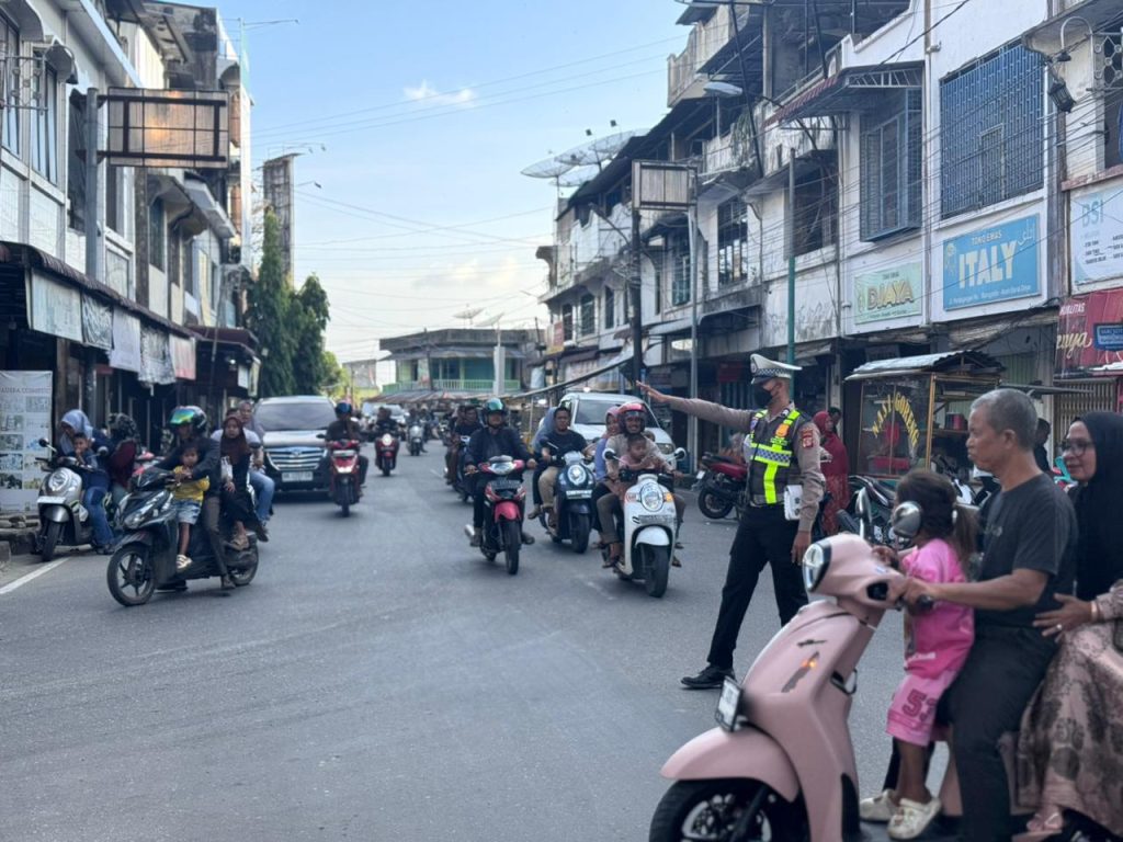 Aceh Barat Daya (Abdya)- Personel Sat lantas Polres Aceh Barat Daya melaksanakan giat Pengaturan arus lalin dan Pengamanan Takjil Bulan Suci Ramadhan 1447 H di Sp. Bank Aceh, Sp. Puskesmas dan Sp.Ceurana / Lapangan Persada Kabupaten Aceh Barat Daya. Senin (02/03/2026).