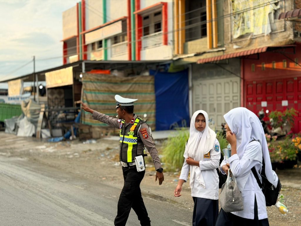 Aceh Barat Daya – Personel Sat Lantas Polres Aceh Barat Daya (Abdya) melaksanakan kegiatan Strongpoint Pagi dan pengaturan lalu lintas di depan sekolah-sekolah di wilayah Abdya. Kegiatan ini bertujuan untuk meningkatkan keselamatan anak-anak sekolah dan masyarakat sekitar. Selasa (03/02/2026)