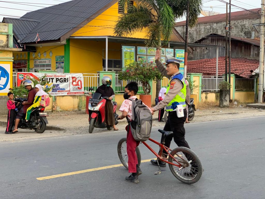 Aceh Barat Daya – Personel Sat Lantas Polres Aceh Barat Daya (Abdya) melaksanakan kegiatan Strongpoint Pagi dan pengaturan lalu lintas di depan sekolah-sekolah di wilayah Abdya. Kegiatan ini bertujuan untuk meningkatkan keselamatan anak-anak sekolah dan masyarakat sekitar. Rabu (21/01/2026)