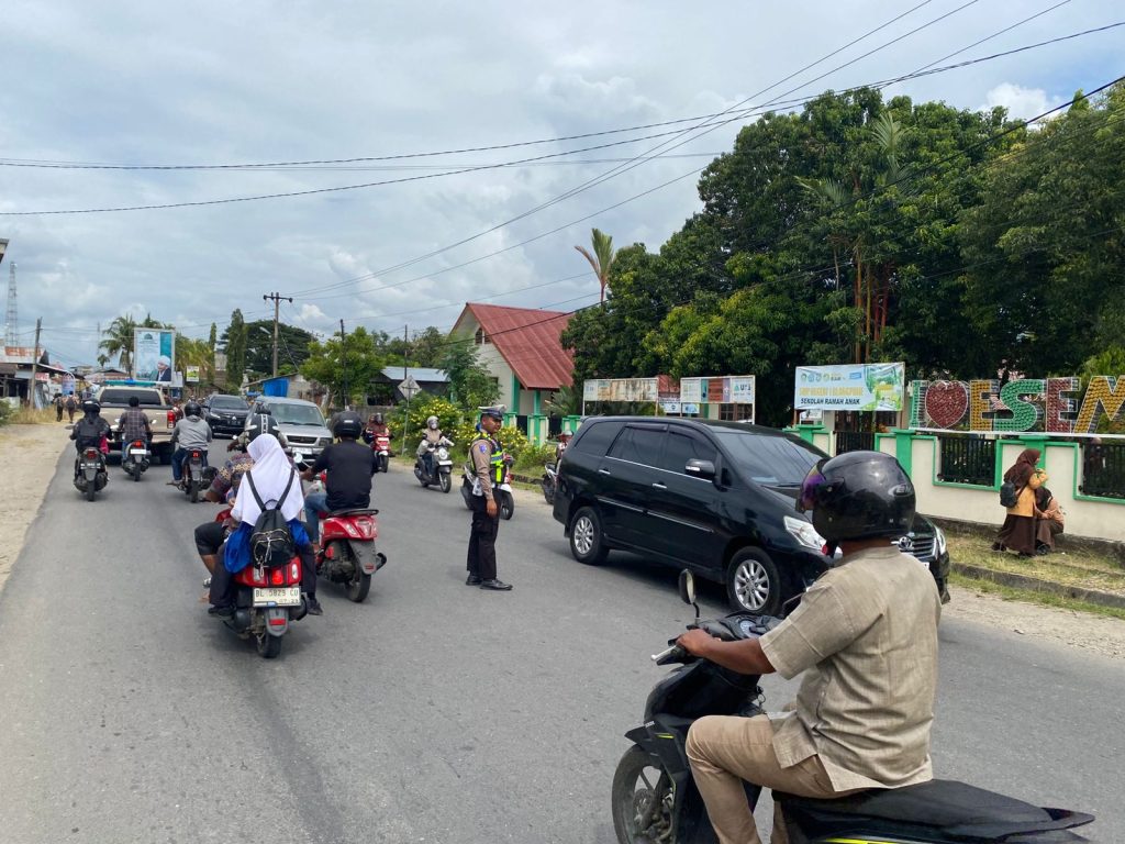 Ciptakan Kamseltibcar Lantas Yang Tertib Dan Lancar, Personel Sat Lantas Polres Aceh Barat Daya Laksanakan Strongpoint Di Depan Sekolah Dan Titik Rawan Kemacetan