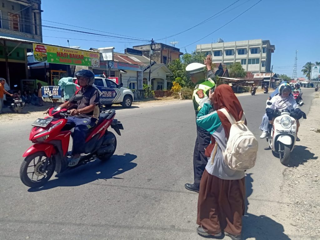 CIPTAKAN KAMSELTIBCAR LANTAS YANG TERTIB DAN LANCAR, SAT LANTAS POLRES ACEH BARAT DAYA GELAR STRONGPOINT PAGI DI DEPAN SEKOLAH DAN TITIK RAWAN KEMACETAN
