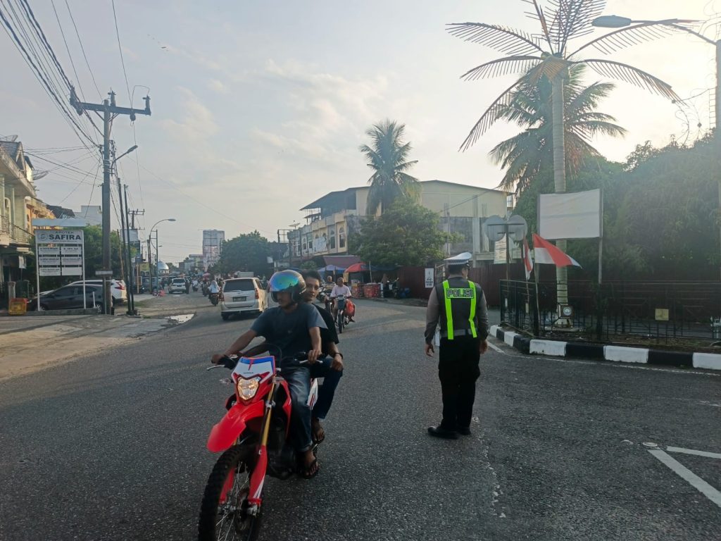 Guna Terciptanya Kamseltibcarlantas, Personel SatLantas Polres Aceh Barat Daya Gelar Pengaturan Lalu Lintas di Sore Hari Menjelang Berbuka Puasa