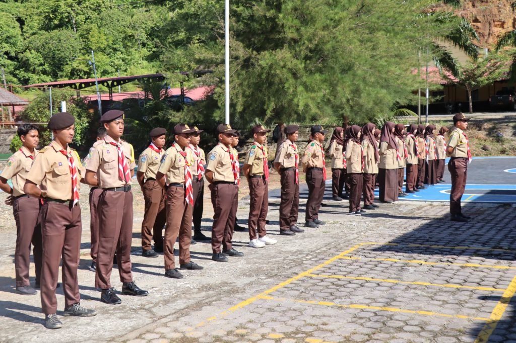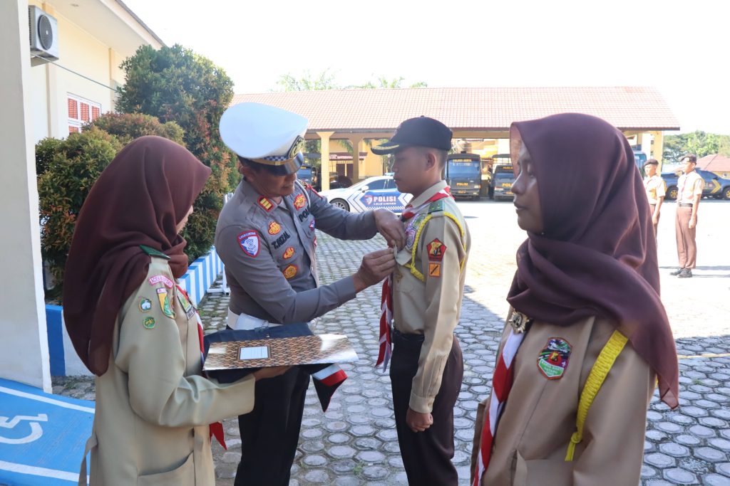 KAPOLRES ACEH BARAT DAYA MEMBERIKAN PIAGAM PENGHARGAAN DAN WING KESELAMATAN BERLALULINTAS KEPADA ANGGOTA PRAMUKA SAKA BHAYANGKARA SANGGAR POLRES ABDYA