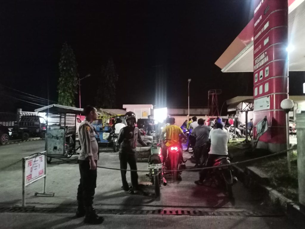 PERSONEL POLRES ABDYA GELAR PENGAMANAN DAN GATUR LALIN TERHADAP ANTRIAN MASYARAKAT DI SPBU