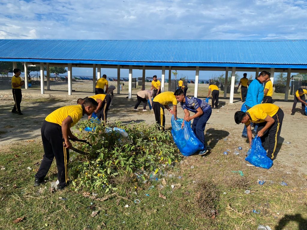 Puluhan personel yang di Pimpin Langsung oleh Kasat Polairud , AKP Nurdi,S.Sos dikerahkan untuk membersihkan material sampah yang mengotori garis pantai demi menjaga ekosistem dan estetika wisata tersebut.