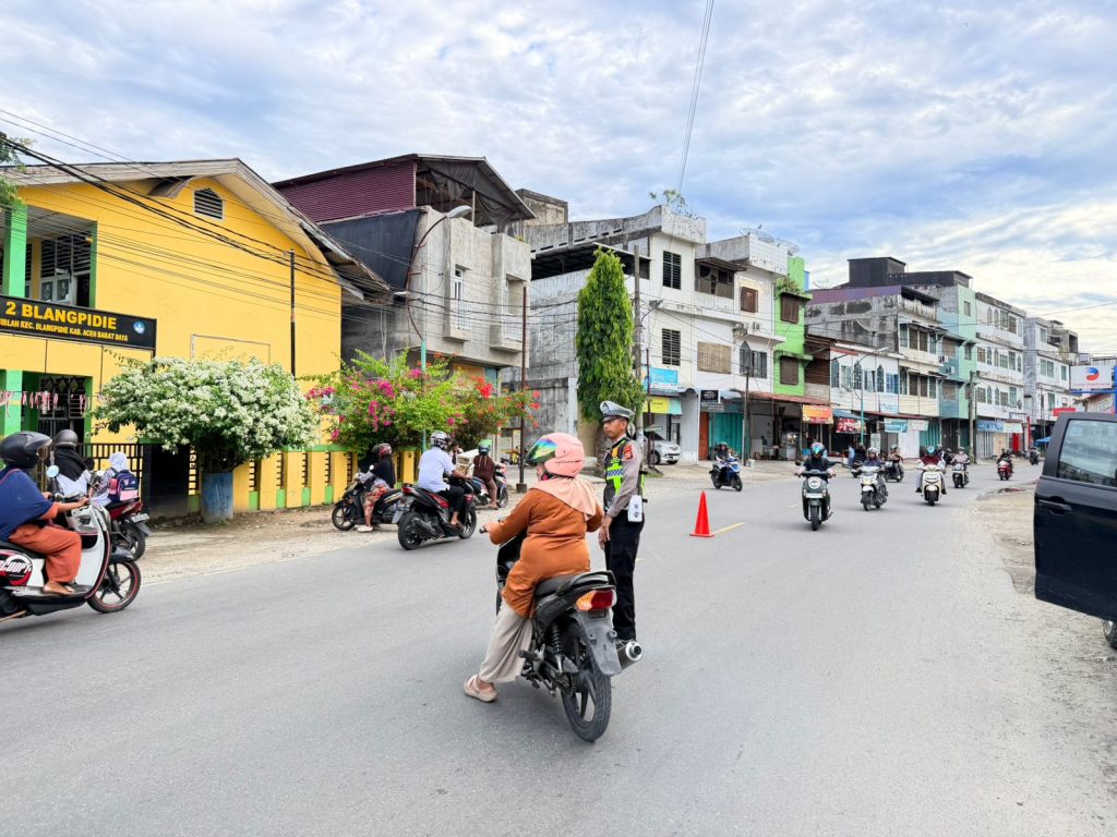 Aceh Barat Daya (Abdya) – Personel Satuan Lalu Lintas (Sat Lantas) Polres Aceh Barat Daya (Abdya) melaksanakan strongpoint pagi di depan sekolah-sekolah di wilayah Abdya, Kegiatan ini bertujuan untuk mencegah kemacetan dan membantu anak sekolah menyeberang jalan dengan aman. Rabu (22/04/2026)